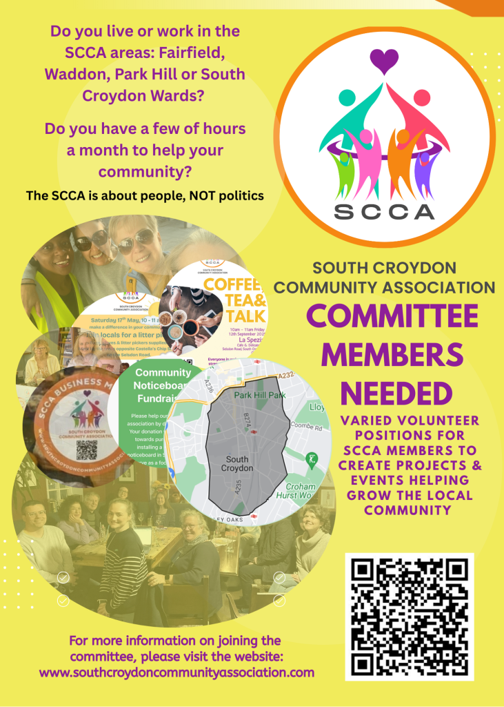 The South Croydon Community Association (SCCA) is run by local volunteers and is dedicated to making central South Croydon a more connected and engaged neighbourhood.
